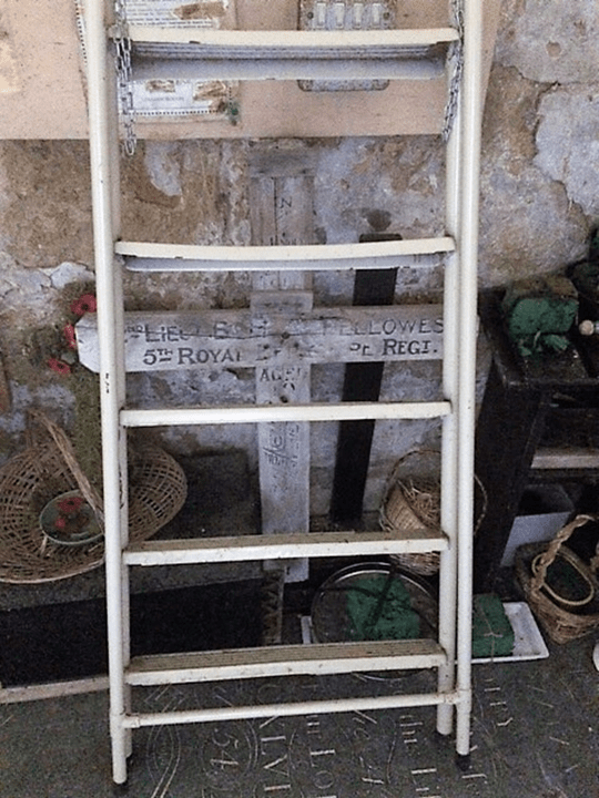 6. WW1 Wooden Cross – 2/Lt Basil Fellowes. The wooden cross marking the temporary grave of 2/Lt Fellowes, who was killed in action on 22 March 1917 aged 19, was located behind a step ladder in the vestry of a church in Leicestershire. After highlighting the significance of the cross to the vicar it is now displayed in the main body of the church.
